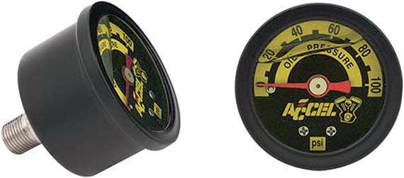 Caracteristicas: 1/8" NPT rear mount oil pressure gauges Stainless steel housing with a black anodized finish Solid brass internals are bathed in a vibration damping glycerin for accuracy 60 or 100 PSI