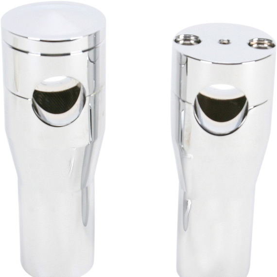 • Chrome billet aluminum risers feature the unique concept of a removable cover that hides the upper handlebar clamp bolts