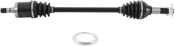 Caracteristicas: Axles are 20% stronger than OEM, 50% stronger than competing aftermarket axles and last 12 times longer than competing axles Axles feature eight precision ball bearings with cage and race sizes that are up to 35% larger for greatly increased CV joint strength Manufactured in facilities that are certified and meet the ISO 9001 quality manufacturing standard Designed with a larger-than-stock chromoly axle shaft and low-profile allow clamps