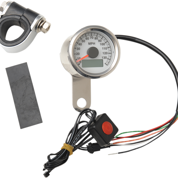 1.87" MPH Programmable Mini Electronic Speedometer with Odometer/Tripmeter - Polished - White Face