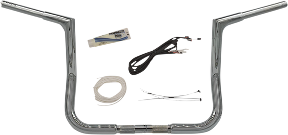 Caracteristicas: Bolt together, two-piece handlebar that takes up half the shelf space and is easy to ship CNC mandrel-bent from 1-1/4" diameter x .120" wall heavy tube EZ Install means no more need to fight internal wiring; you can install wiring in minutes Certain models and heights of handlebar kits will include a brake line extension, clutch line/cable extension and wiring harness, while some of the shorter handlebar kits will only contain a wiring harness or a clutch line/cable extension; each kit is priced accordingly Black handlebars come with black lines/cable extensions; chrome handlebars come with braided lines/cable extensions Knurled and notched for TBW applications Made in the U.S.A. Kits include only the necessary components needed to install handlebars based on the model and height of handlebar Patent No. 10,946,926