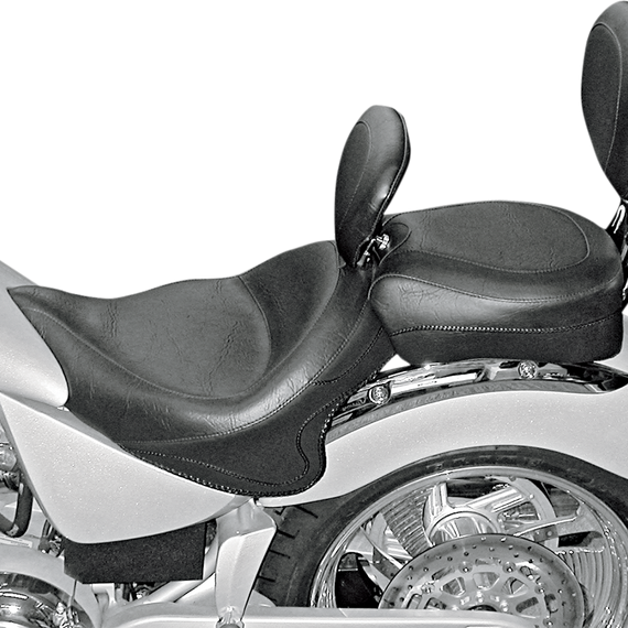Caracteristicas: Deeply contoured front bucket; passenger seat angles forward to support the rider's back Premium-quality, expanded vinyl cover Built-in steel support wings in the passenger seat Vintage has no studs or conchos for a clean, smooth look Made in the U.S.A.