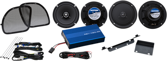 Caracteristicas: Complete Road Glide specific front and rear speaker kit with 200-watt 4-channel amp Includes Hogtunes REV 450-RM amp and GEN 4 – 6.5" front and rear speakers with Road Glide specific grills 100% plug-n-play and includes all required hardware to complete installation System is easily expandable