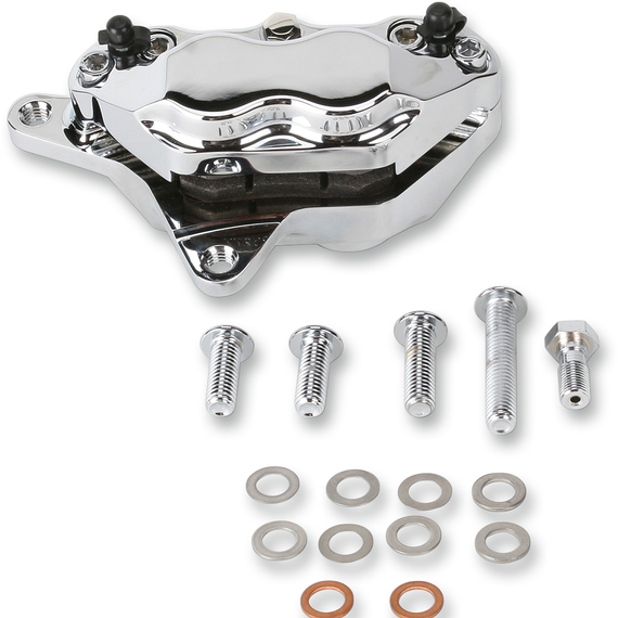 Caracteristicas: Precision CNC-machined billet aluminum construction Feature stainless steel pistons and chrome hardware Quick-change design for easy pad maintenance Dual, hidden bleeders for easy bleeding Differential bore technology Billet aluminum brackets are included where required Made in the U.S.A.