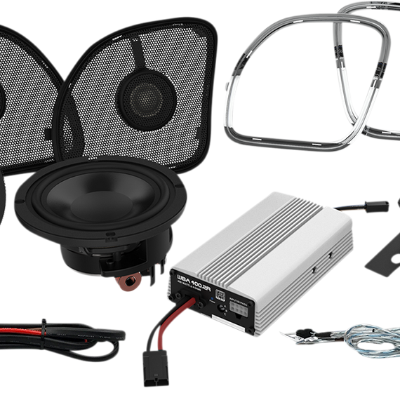 Caracteristicas: Features a plug-n-play, 400-watt 2-channel amplifier with R.E.M.I.T Technology with Road Glide specific mounting Wild Boar Audio 6.5" 4-ohm Road Glide specific front speakers Front speakers include black trim and chrome trim for speaker grills System is extremely easy to expand to add a second or 3rd amp later on Includes very high-quality plug-n-play wire harnesses and everything needed to complete the installation