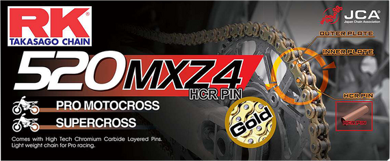Caracteristicas: Made for the serious motocross racer with all components heat-treated for high-performance durability Features chromoly steel construction with seamless rollers and bushings, and oversized alloy pins for added strength Chains include clip connecting link