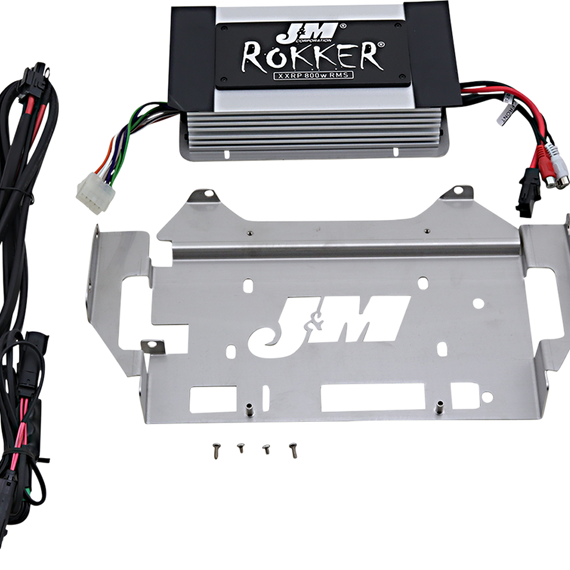 Caracteristicas: Application-specific amplifier kit Plug-n-play RCA input harnesses included take the 2-channels of audio signal available from the source and provide 4 separate channels at 800 watts 2 or 4-ohm speaker load (Manually selectable on the amplifier itself for a 2-ohm or 4-ohm speaker load) Full range class D digital amplifier properly shielded against RF interference into the AM or FM stereo radio bands Advanced digital switching power supply technology to dramatically reduce the 12v current demands on the motorcycle electrical system Amplifier mounts to the custom made stainless steel 2-piece bracket system, to provide solid and secure mounting & blocking amplifier heat from being transferred to the radio Fully programmable thru the internal digital signal processor (DSP) and comes out of the box already dialed in for your specific application to provide maximum highway performance from your factory audio system Also included: custom made heavy-gauge power and ground wires used for the fused battery & frame connections, all necessary mounting hardware, complete installation/operation instructions