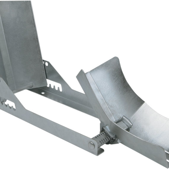 Caracteristicas: Fits a large variety of wheel widths and diameters Adjusts from scooters to cruisers with 15" to 21" wheels Multi-fit with an adjustable wheel ramp and backstop Accepts tire widths from 90mm to 200mm Can be used for the front or rear wheel Bolts to trailer or transport vehicle's floor for a semi-permanent installation Narrow 8" chassis allows fitment on "rail" type trailers Four anchor bolts and all hardware included for mounting Easily adjusts with no tools needed Made of galvanized steel