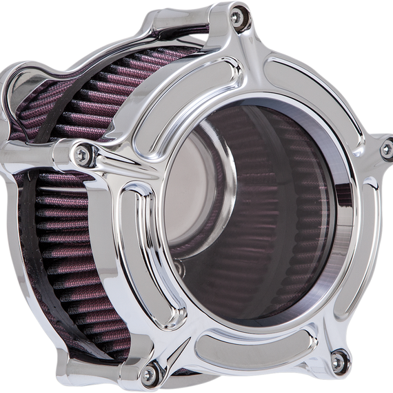 Caracteristicas: Revolutionary backing plate that promotes smooth airflow into the carb/throttle body Includes mounting hardware, slotted breather bolts and oil tubes CNC machined from billet aluminum and polycarbonate Allows for viewing of internal intake components Hidden built in crank case breathers High volume and best in filtration K&N air filter included