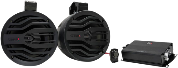 • Universal low-profile switch-mounted Bluetooth® input media-controller and amplified dual speaker kit