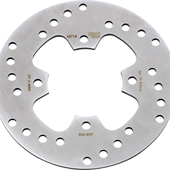 Caracteristicas: Heat-treated carbon steel brake rotors Steel construction extends rotor and brake pad life by eliminating galling Rotors come with or without scraper holes (according to OEM rotor design)