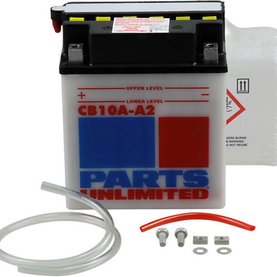 Caracteristicas: Powerful starting power at a great price! Parts Unlimited Heavy-Duty batteries are built to the same exacting specifications and quality-control standards as OEM Rugged and provide more cranking power over standard batteries Lead calcium alloy reduces water loss and service by 66% compared to standard batteries Includes anti-sulfation chemical formulated to reduce sulfate crystal buildup on the battery plates Reduces self-discharge for longer time between charges Fiberglass separators improve acid flow Kit includes battery, pre-measured acid pack, red filler tube, hardware kit and clear vent tube