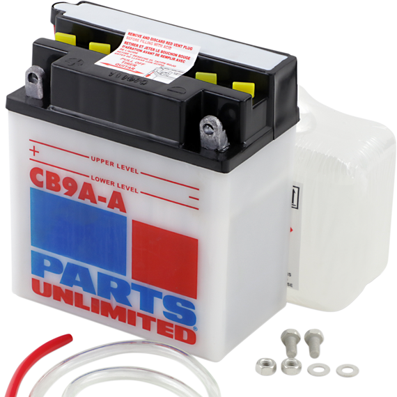 • Kit includes battery, pre-measured acid pack, red filler tube, hardware kit and clear vent tube