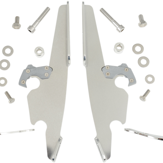 Caracteristicas: Angle Adjustable Model specific no-hassle installation, then on-off without tools A pair of glass-filled nylon latches lock it down until the spring loaded "Trigger-Locks" are intentionally disengaged Made exclusively of electrocoated aluminum and stainless steel, with stainless steel fasteners Anchoring hardware is the same for all windshields and fairings for each bike Made in the U.S.A.