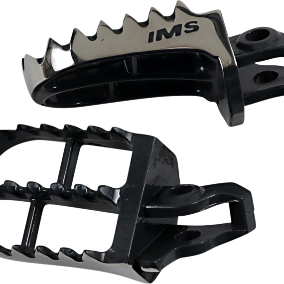 Caracteristicas: Cast from 17-4 stainless steel Provide a platform that is as much as 27% wider than stock (57 mm vs. 45 mm) Feature IMS’ patented sprocket tooth design for unparalleled grip and mud relief