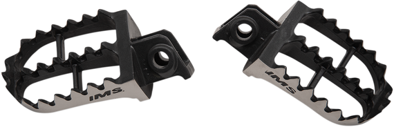 Caracteristicas: Cast from 17-4 stainless steel Provide a platform that is as much as 27% wider than stock (57 mm vs. 45 mm) Feature IMS’ patented sprocket tooth design for unparalleled grip and mud relief