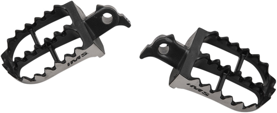 Caracteristicas: Cast from 17-4 stainless steel Provide a platform that is as much as 27% wider than stock (57 mm vs. 45 mm) Feature IMS’ patented sprocket tooth design for unparalleled grip and mud relief