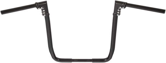 Caracteristicas: Innovative 1-1/4" steel handlebars feature billet aluminum junction clamps that rotate towards or away from the rider to set at their desired comfort needs Mini-ape styling Multi-piece design allows for easier installation and ability to adjust bar angle to each riders preferred riding position