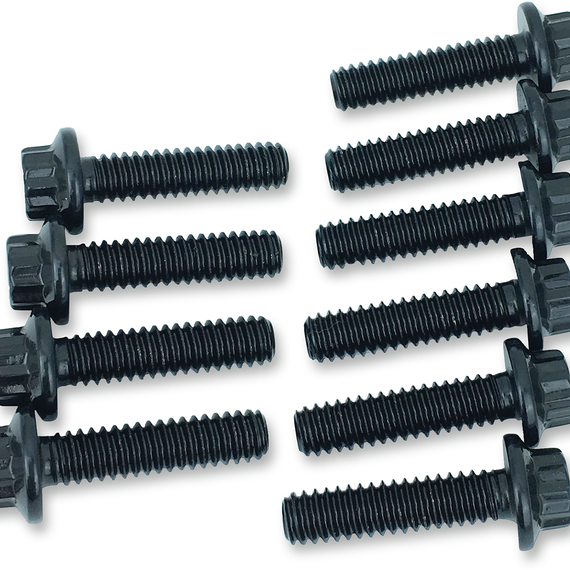 Caracteristicas: Optional kit for Feuling camplates/oil pumps only Quality 12-point, heat-treated 8740 chromoly steel bolts with black oxide finish manufactured by ARP® to Feuling's exact specifications Precision-rolled threads provide optimum engagement, prevent galling and promote consistent torque loading Wide, underhead flange design provides even load distribution for optimum sealing of surfaces to prevent leaks Tensile strength rated at 170,000 psi; superior and stronger than OEM and stronger than grade 8 fasteners Includes moly assembly lubricant for installation Made in the U.S.A.