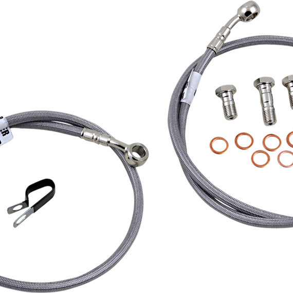 Caracteristicas: Requires less pressure at the lever, allowing the rider to use less force while stopping the bike faster and with better feel Fittings come from the factory pre-positioned but can swivel 180° if necessary to make the installation process easier Include a clear outer coating which protects the bike from scratches and the lines from humidity Complete with all necessary banjo bolts and washers and ready to install