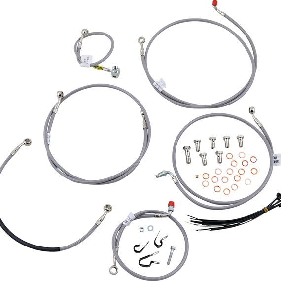 Caracteristicas: Requires less pressure at the lever, allowing the rider to use less force while stopping the bike faster and with better feel Fittings come from the factory pre-positioned but can swivel 180° if necessary to make the installation process easier Include a clear outer coating which protects the bike from scratches and the lines from humidity Complete with all necessary banjo bolts and washers and ready to install
