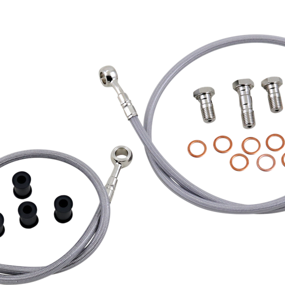 Caracteristicas: Requires less pressure at the lever, allowing the rider to use less force while stopping the bike faster and with better feel Fittings come from the factory pre-positioned but can swivel 180° if necessary to make the installation process easier Include a clear outer coating which protects the bike from scratches and the lines from humidity Complete with all necessary banjo bolts and washers and ready to install