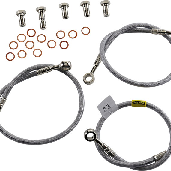 Caracteristicas: Requires less pressure at the lever, allowing the rider to use less force while stopping the bike faster and with better feel Fittings come from the factory pre-positioned but can swivel 180° if necessary to make the installation process easier Include a clear outer coating which protects the bike from scratches and the lines from humidity Complete with all necessary banjo bolts and washers and ready to install