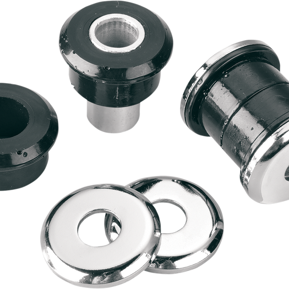 Caracteristicas: Adds a more positive feel to handlebars Limits vibrations Kit contains high-quality bushings, chrome handlebar retainer washers and steel inner sleeves Made in the U.S.A.