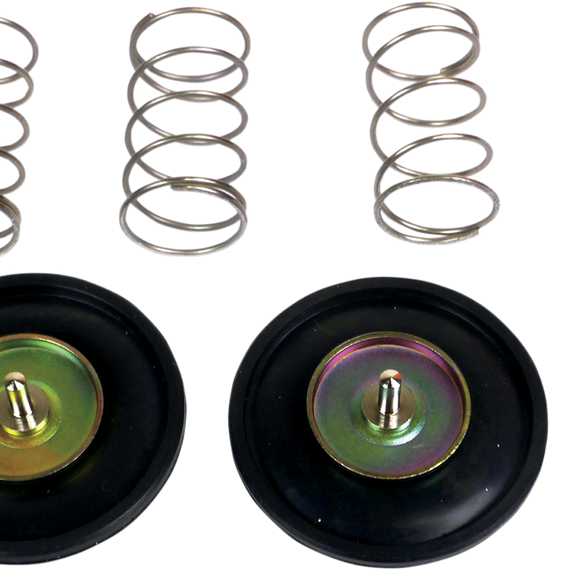 Caracteristicas: Located on the side of the carburetor, the air cut-off valve prevents lean fuel mixture (backfire) when decelerating Temporarily closes the pilot jet airway to provide a richer mix as the throttle closes Direct OEM-style replacement carburetor air cut-off valve set Include diaphragm, spring and O-ring