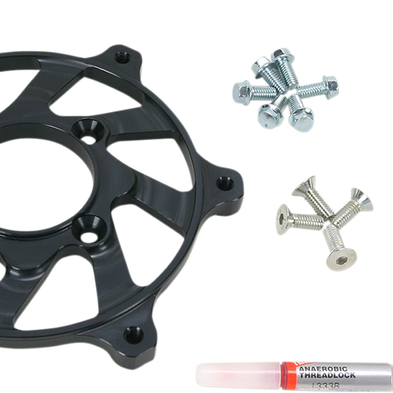 • Fronts include carrier ring adapter and all necessary spacers and hardware to mount OE-type brake rotor; rears include carrier ring adapters (2) and all spacers and hardware to mount OE-type brake rotor and drive sprocket