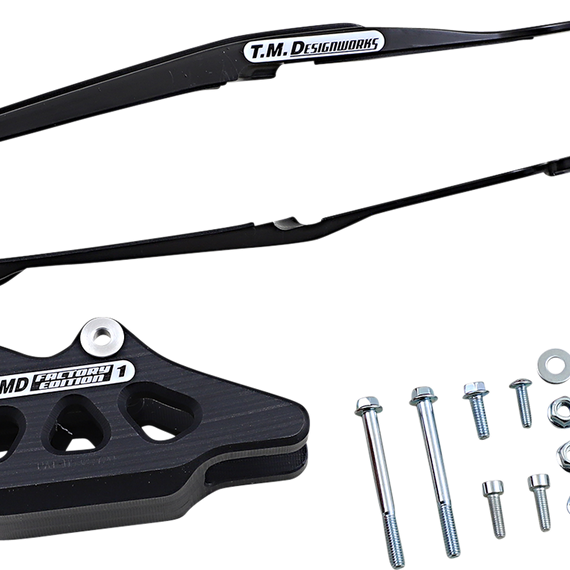 Caracteristicas: The kit includes front slider, lower frame pad & FE #2 rear guide with replaceable wear pad. Noise dampening pad system lowers chain slap noise. A special chain guidance backing plate keeps the chain constantly centered to improve suspension. The lower Powerlip frame pad last longer but more importantly lowers surface drag.
