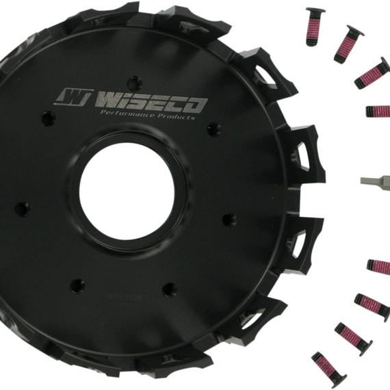 Caracteristicas: Forged from lightweight aerospace-grade aluminum alloy; CNC machining ensures each clutch basket is identical to the next Weight-saving relief cuts on outside of clutch reduce rotational mass, allowing engine to rev quicker Large oiling holes increase lubrication and reduce heat buildup PTFE coating makes for a near-frictionless surface Come with fasteners complete with pre-applied thread locker