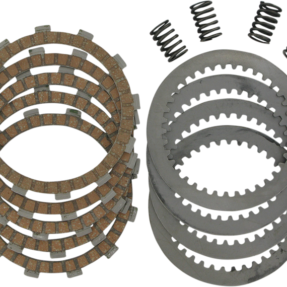 Caracteristicas: Designed to outperform any OEM or aftermarket clutch DPK kits include friction plates, steel drive plates and clutch springs, except when OEM clutch includes reusable diaphragm spring DPK clutch kits come in a foam-lined hard plastic case that protects clutch components from being damaged prior to installation Case can be used to store and transport parts, tools or other items after clutch is installed Come ready to race - no need to presoak plates in oil Designed to ensure ultrasmooth power delivery Exclusive high-heat friction materials for fade-free performance Friction compounds designed to suit off-road and dual-sport bikes More durable than OEM plates Steel drive plates Steel plates won't expand, do not fade or promote clutch swell like stock aluminum plates Long lasting - up to 300% more life than stock plates Increased weight over stock plates adds flywheel effect for aiding starting and traction Will not muddy or contaminate oil Clutch springs Precision-wound using the finest chrome silicone wire Heat-treated and shot-peened for maximum life Individually designed to ensure no slippage with super-strong spring rates Improve feel and ease of clutch operation