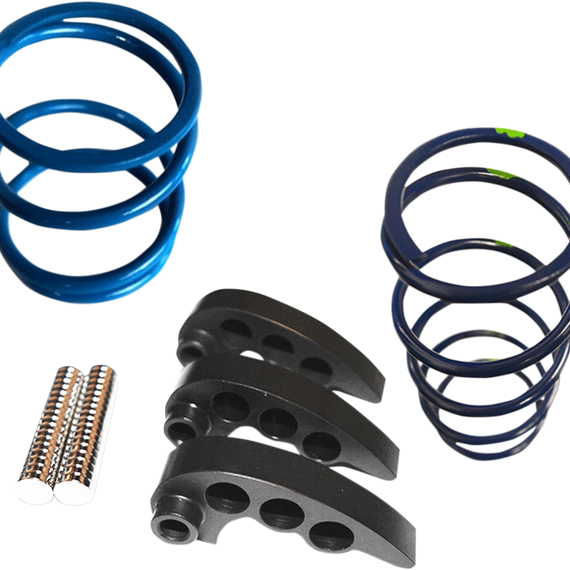 Caracteristicas: Achieves peak RPM faster and more aggressively Holds peak RPM better Back shifts much quicker Easily adjustable for tire size or other modifications Works well with stock or modified motors Much better power transfer than the stock weights Spring holds much better tension on the belt than factory