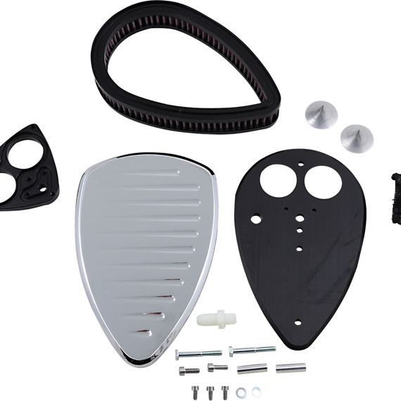 Caracteristicas: Slim 1-1/2" hi-flow reusable filter and specially designed back plate dynamically increases air flow and velocity Complete with breather kit, mounting hardware and micron-fabric raincoat for wet-weather riding Flow-bench and dyno-designed for substantially increased horsepower and torque Innovative styling enhances and accentuates your "V" Twin engine Easy-to-follow instructions included for a do-it-yourself install Set-back, thin-line design does not interfere with rider's leg Maximizes overall performance and fuel efficiency Made in the U.S.A.