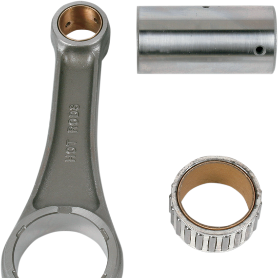 Caracteristicas: Heavy-duty OE replacement connecting rods Certified 8620 AISI steel provides superior strength Crankpins are manufactured from hot-rolled ASTM 4115 and case hardened to 58-62Rc Feature the latest in caged needle roller bearing designs for high rpm longevity Uniquely designed big end uses strategically located side scalloping and vent slots to minimize bearing race distortion at high rpm Small ends are double drilled to supply extra lubrication and cooling to the wrist pin bearing, which is especially important when the piston crown is close to the wrist pin bearing Shot-peened to eliminate surface stress risers and to smoothly blend together the rod forging's radiuses Double honing produces an ultra-round bearing surface for reliability at high rpm Most rod assemblies are sold complete with rod, crank pin, crank pin bearing, top-end bearing and silver-coated bronze phosphor thrust washers Compatible with Hot Rods and OE crankshafts Made in U.S.A.; connecting rod manufactured at Hot Rods Iowa facility