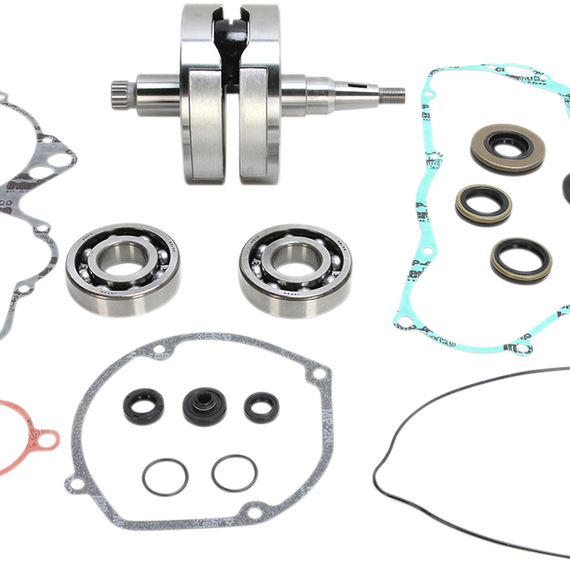 Caracteristicas: Crankshaft kits include crankshaft, top end bearing, premium main bearings and a complete bottom end gasket set that includes all seals and gaskets needed to do the job Only one part number to stock and order Crankshafts are factory assembled and precision trued to OEM specifications Double-forged Wiseco connecting rods maintain superior dimensional consistency through improved grain flow Shot-peening eliminates residual stresses and smoothly blends the rod forging surfaces Corrosion-resistant surface treatment Top and bottom end rod bores case hardened to 58-62 RC to optimize bearing running surface Crank pin bearing radial running clearance is optimized to ensure maximum performance Precision honing ensures ultra round bearing surface Precision-engineered oiling slots maximize rod strength and bearing life Double-drilled small ends provide the piston pin with extra lubrication and cooling, reducing distortion of top end due to thermal transfer from the piston Silver-coated bronze phosphor thrust washers, with dimpled design to increase oil retention and reduce friction between rod and washer interface Crank pin bearings are manufactured from the highest quality hot rolled steel; case-hardened to 58-62 RC Caged needle roller bearings provide the highest possible rpm Precision-machined crank webs Wiseco complete gasket kits are made from premium materials for maximum sealing and reliability; all bearings are OEM-quality for reliability and performance