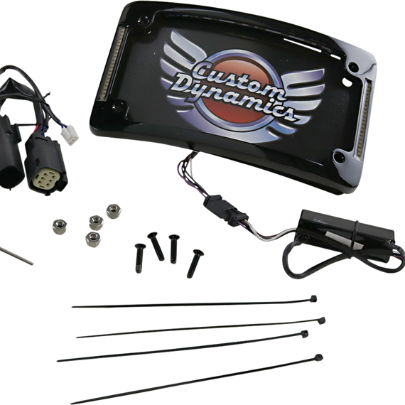 Caracteristicas: Low profile aluminum radius (12 degree curvature) horizontal license plate frame 20 dual intensity red LEDs are flush mounted on each side and function as run, brake, and turn ( some applications only function as run/turn) 6 white LEDs for plate illumination Plug & play installation Mounting hardware included Confirm license plate mounting bracket before purchasing. OEM mounting bracket may need to be modified or changed for radius license plate frame to mount properly. Plate frame requires 12 degree curved mounting.