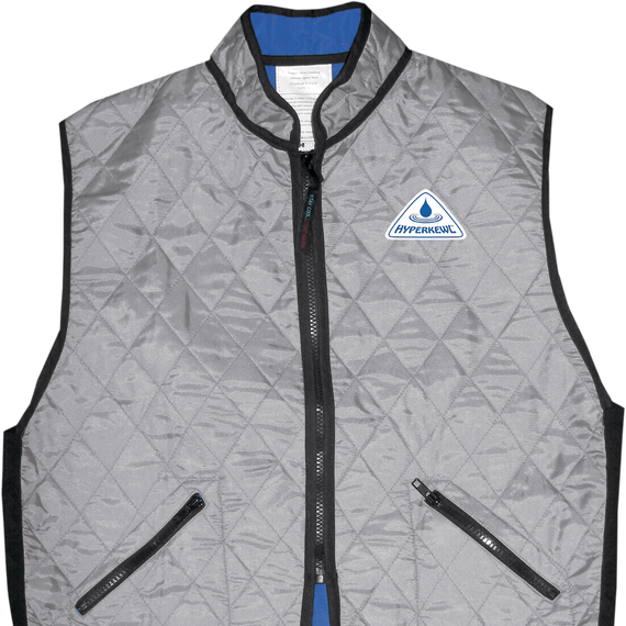 Caracteristicas: High collar with hook-and-loop neck closure for additional cooling relief and sun protection, handy front pockets and zipper closure; designed especially for bikers Provide 5-10 hours of cooling relief per soaking; lightweight, durable and washable Comfortable, quilted nylon outer with polymer embedded fabric inner, water-repellent nylon liner and black cotton-poly elastic trim