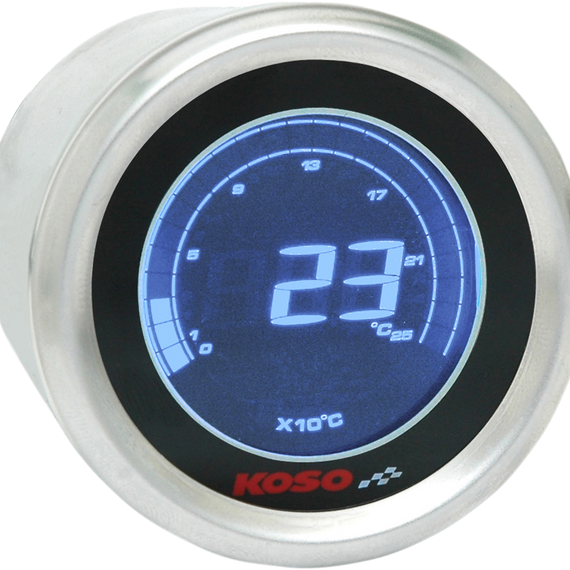 Caracteristicas: Easy to read at high speeds, thanks to large digits Switchable between °C and °F Display range of 0-250°C and 32-500°F Backlight display lights show blue or red Dimensions: 48 mm (1.9") W x 46 mm (1.8")