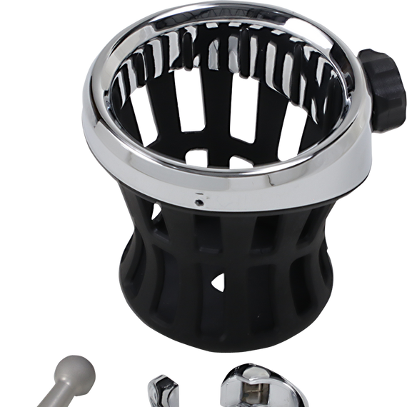 Caracteristicas: Hold virtually any can, bottle or cup securely with a contoured rubber net Infinite adjustment with a Ciro ball-mount design Rubber-lined ring keeps your can or bottle from vibrating Soft rubber net won't scratch if it comes in contact with paint Additional mounting options available, see related products
