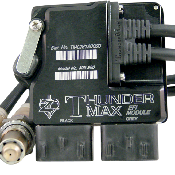 Caracteristicas: Includes ThunderMax ECM with Auto-Tune Module, plug-in harness and two wide-band sensors, TMax software and communication USB cable, Quick-Start Easy Install and Comprehensive User's Manual, technical support and free software and updates Hundreds of maps available to download for your bike (based on model, engine size, exhaust system air cleaner, pistons, cams, etc.) - load the map of your choice and the integral auto-tune will do the rest Software program allows live monitoring, recording and examination of diagnostic codes and datalogs including number of starts, engine temperature and rpm operation Utilizes wide-band O² sensors and works as a closed-loop control system to continuously self-adjust and properly tune the motorcycle's air/fuel ratio for all riding conditions ThunderMax ECM with Auto-Tune module mounts conveniently in place of the factory ECM and plugs in to the existing harness Easy installation: replace the factory ECM, install new O² sensors and harness, load the correct map for your bike, and ride New maps, software, firmware updates, map analysis and tech support available online at no charge Adjustable front and rear cylinder AFR maps, ignition timing (spark) maps, and startup maps Works with all popular exhaust systems and is compatible with high-performance camshafts Rider can adjust idle speed, rev limit and speedometer calibration Improves throttle response, exhaust sound and driveability Supports turbo, nitrous and supercharger applications Does not require dyno tuning Made in the U.S.A. Because of possible clearance issues, some aftermarket exhaust systems may require modifications or relocation of their O² sensor port bungs.