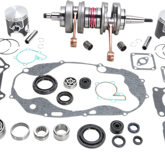 Caracteristicas: Convenient one-stop shop in a box; nearly all components required for a complete and professional rebuild Vertex piston kit (standard compression piston, rings, pin and clips) Hot Rods heavy-duty crank (stock stroke Æ’?? includes wrist pin bearing for two strokes) Hot Rods main bearing/seal kit Hot Rods transmission bearing kit (includes transmission bearings, output shaft collar and sprocket lock washer) Hot Rods counter balancer bearing kit Hot Rods water pump bearing and seal kit Vertex complete gaskets kit, including seals and O-ring kit (covers top and bottom)