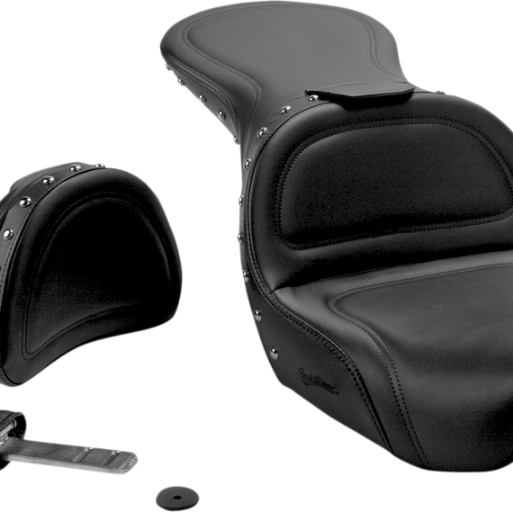 Caracteristicas: Designed and contoured for two-up touring comfort; match all studded saddlebags and luggage Split-cushion design separates seating surface from lumbar support, reducing tailbone and back pressure SaddleGel™ in both driver and passenger areas increases comfort during trips of any length Supple SaddleHyde™ offers a combination of comfort, glove-soft leathery feel and weather-resistant, no-maintenance good looks Also feature 1/2" chrome-plated brass studs that follow a special stitch pattern Made in the U.S.A.