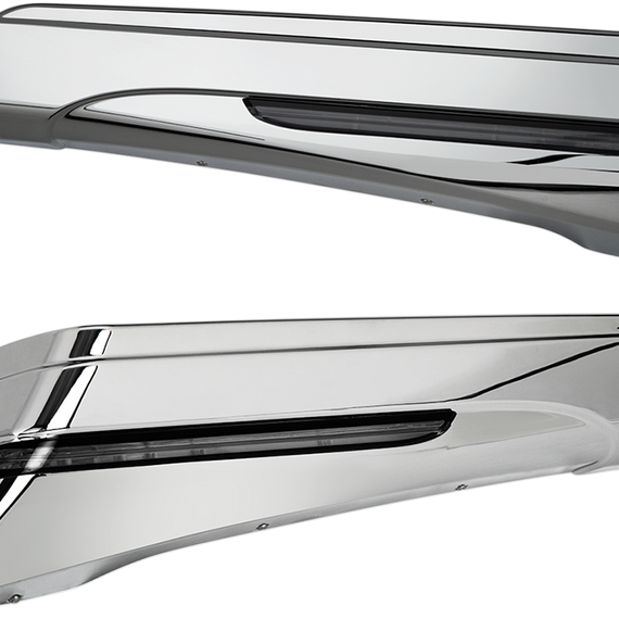 Caracteristicas: Give baggers a smooth, lower, custom look Manufactured from the same ABS material as OE bags Increased visibility and style with LED running, turn, and brake lights on the sides and back Designed not to decrease lean angle clearance or cornering ability Easy plug and play installation