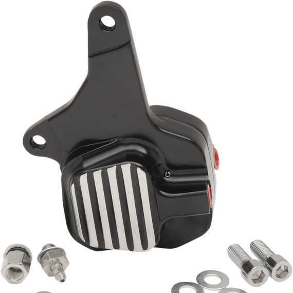 Caracteristicas: All single-disc applications require a 5/8" bore master cylinder All front dual-disc applications require the factory 11/16" bore (84 and later) or the GMA 3/4" handlebar master cylinder Brake pads included Made in the U.S.A. Not recommended for use with imported stainless steel rotors. When installing new calipers, always check spoke-to-caliper clearance.