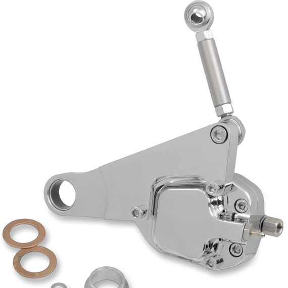Caracteristicas: All single-disc applications require a 5/8" bore master cylinder All front dual-disc applications require the factory 11/16" bore (84 and later) or the GMA 3/4" handlebar master cylinder Brake pads included Made in the U.S.A. Not recommended for use with imported stainless steel rotors. When installing new calipers, always check spoke-to-caliper clearance.