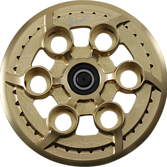 Caracteristicas: Designed for form and function! This great looking durable pressure plate is CNC precision machined from 6061-T6 billet aluminum The attractive reinforced design also helps protect your clutch assembly in the event of a low-side or tip over The bearing and clutch control pin are also included and installed for easy, trouble-free installation