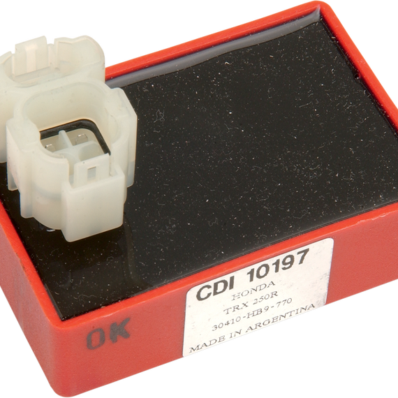 Caracteristicas: CDI box enhancements include one or more of the following: multiple spark, increased rpm redline or altered ignition advance curves Advance curve allows ATV to rev at higher rpm and quicker rate Also may be used to replace defective CDI box on stock machines