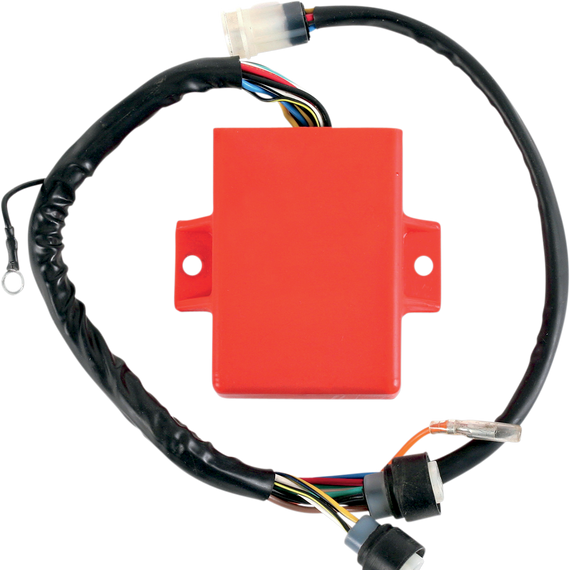 Caracteristicas: CDI box enhancements include one or more of the following: multiple spark, increased rpm redline or altered ignition advance curves Advance curve allows ATV to rev at higher rpm and quicker rate Also may be used to replace defective CDI box on stock machines